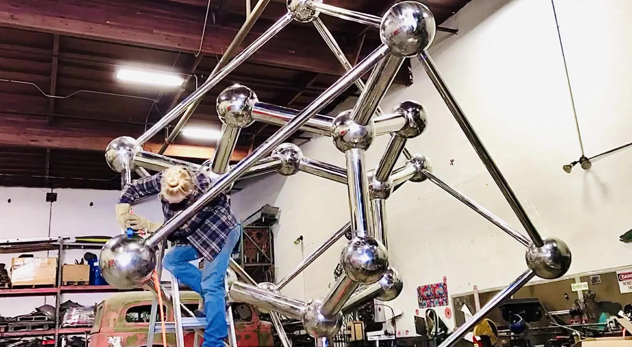 Fourteen is a large stainless steel sculpture of a silicon molecule located in the heart of Silicon Valley. The name comes from silicon’s atomic number, 14. The artwork recognizes William Shockley’s invention of the silicon transistor and the beginning of the computer industry that helped shape the region.