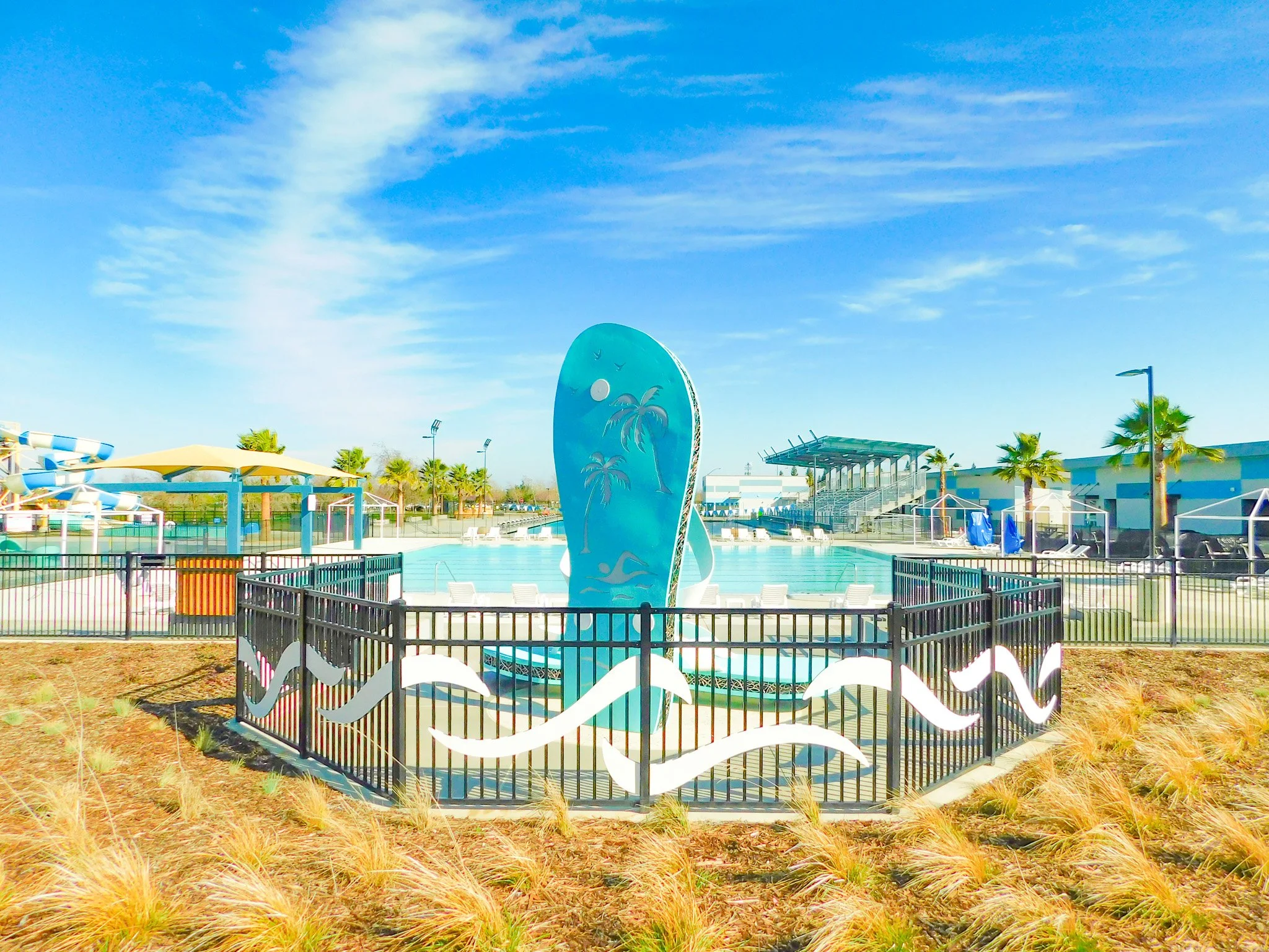 Standing 15 feet tall, Between the Toes is recognized as the world’s largest pair of flip flops. Installed at the North Natomas Community Center and Aquatics Complex, the sculpture brings a playful and welcoming presence to the site, encouraging gathering, relaxation, and a sense of place.